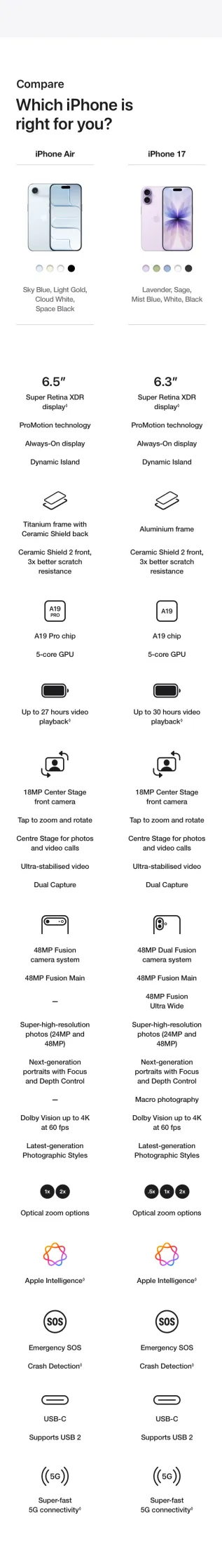 | 512GB | TBC | Black, White, Mist Blue, Sage, Lavender | 1 Year Apple SG |