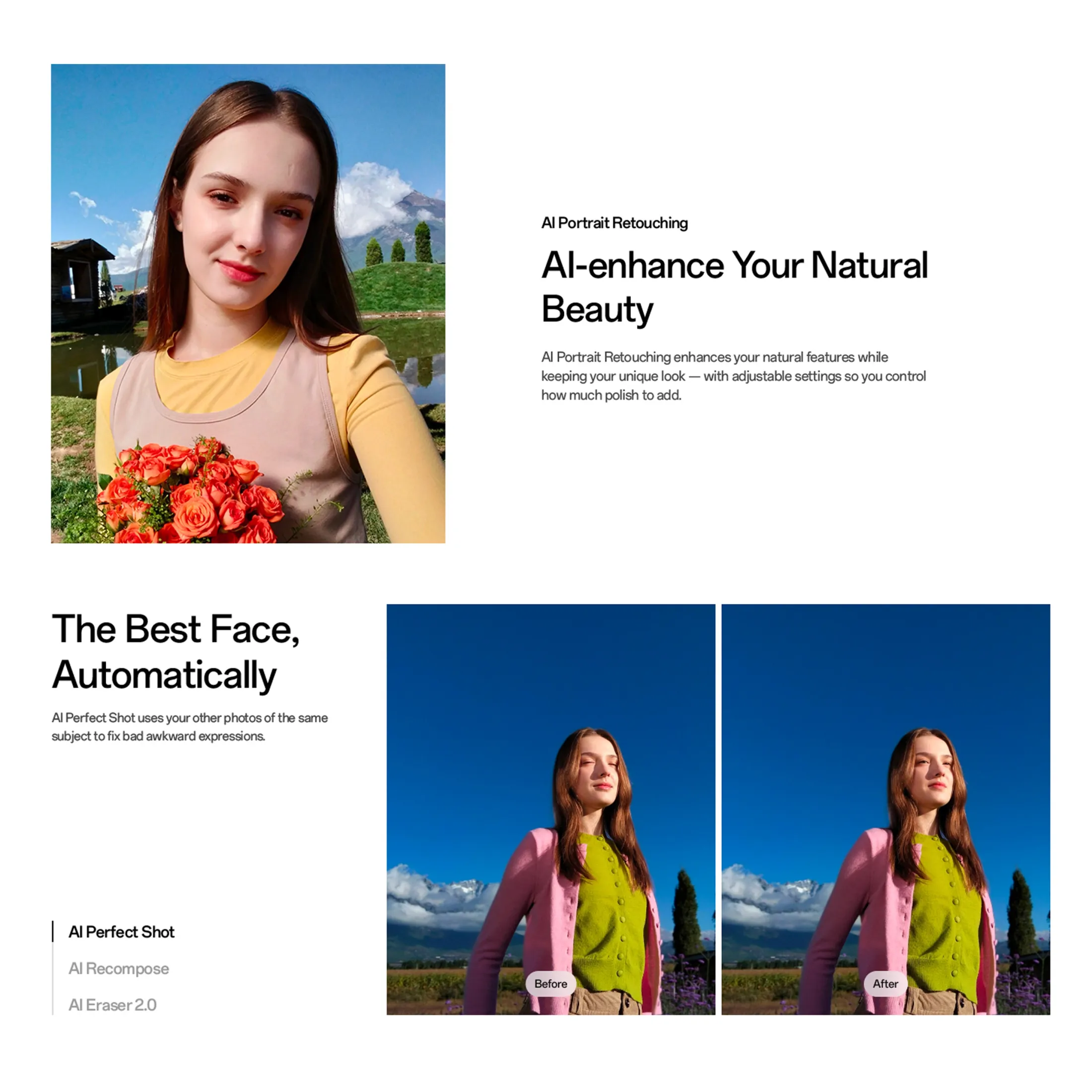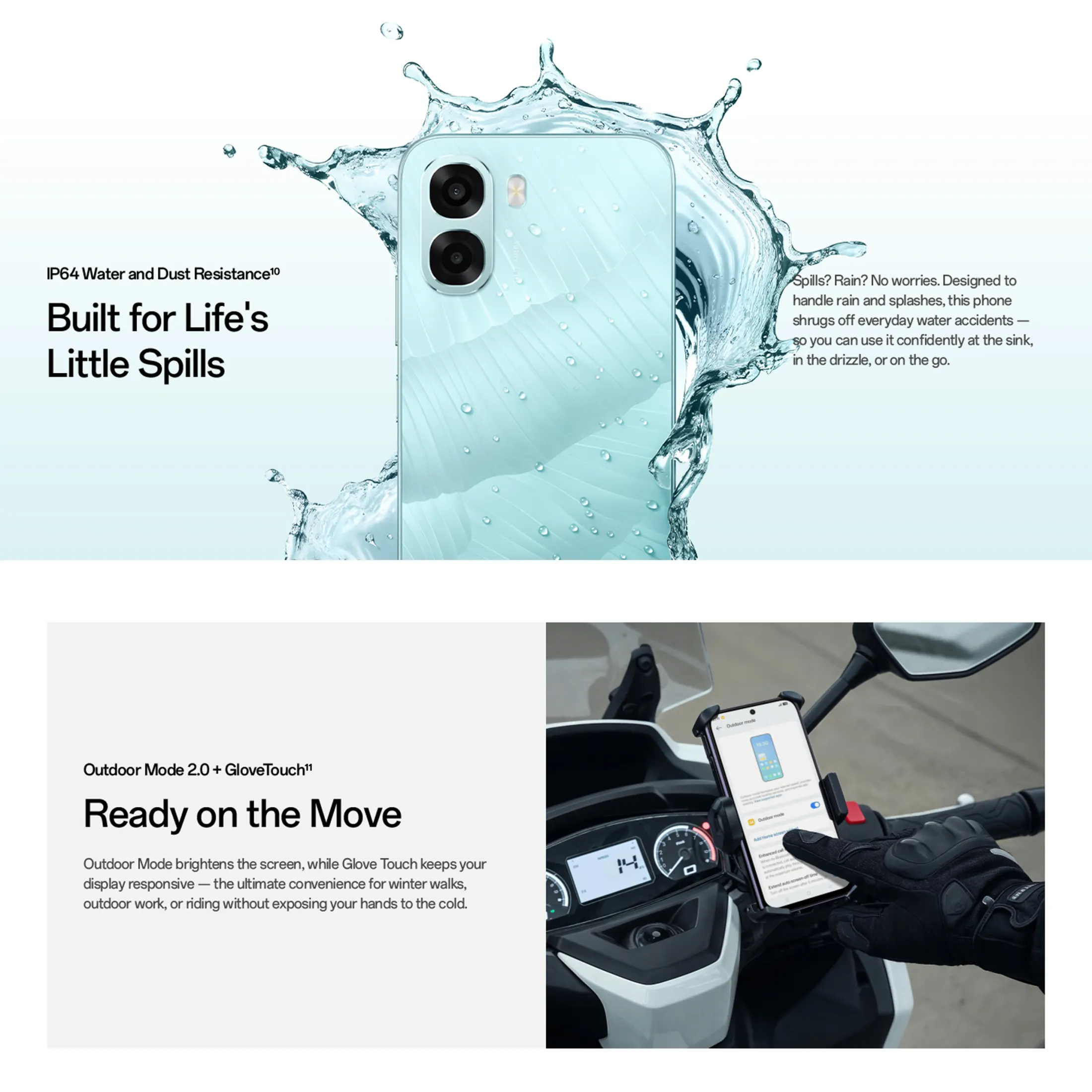 Camera Modes: Beyond its dual 50MP rear camera, the phone supports creative shooting modes – including dual-view video (simultaneous front + rear recording), slo-mo video, AI scene enhancements, and a Pro photo mode