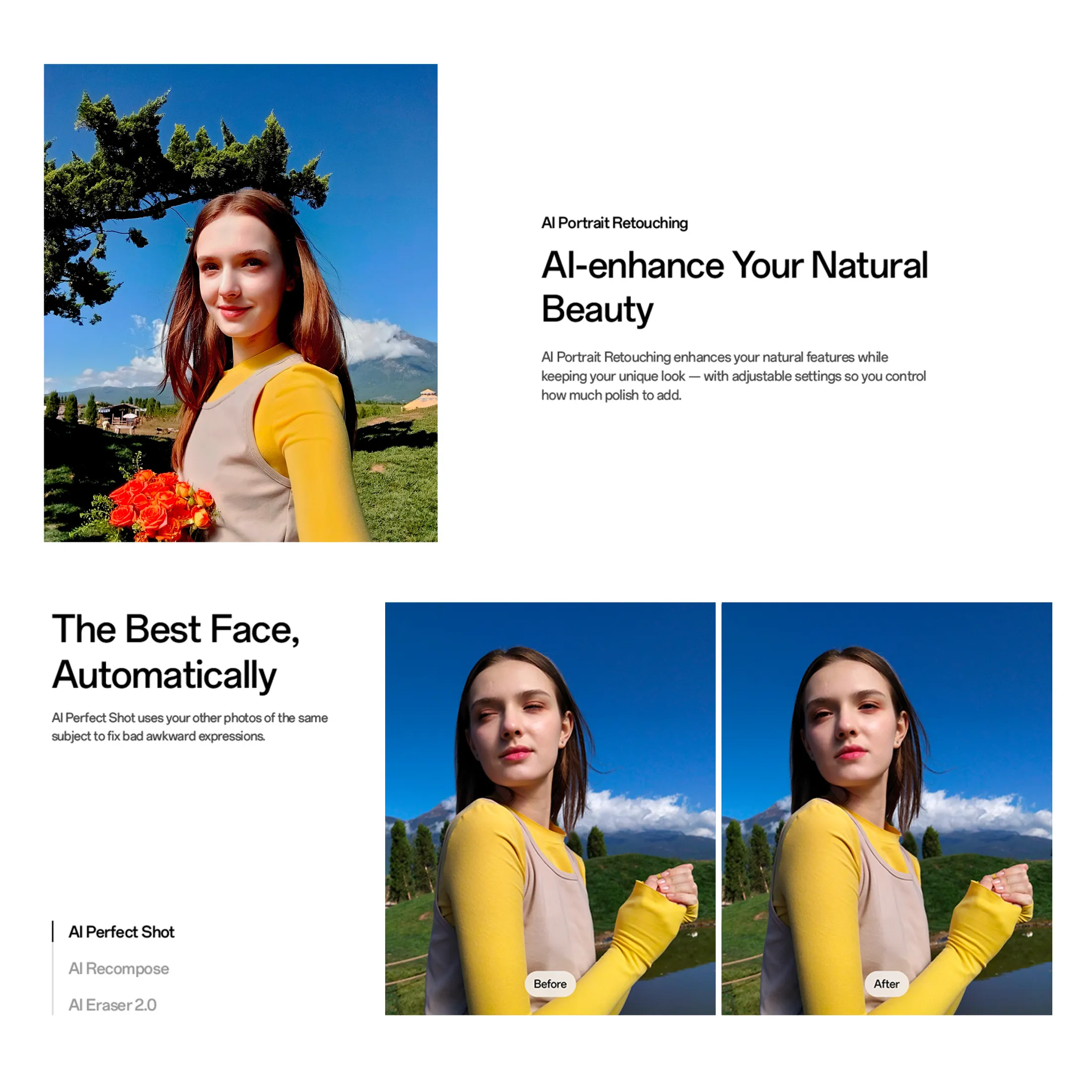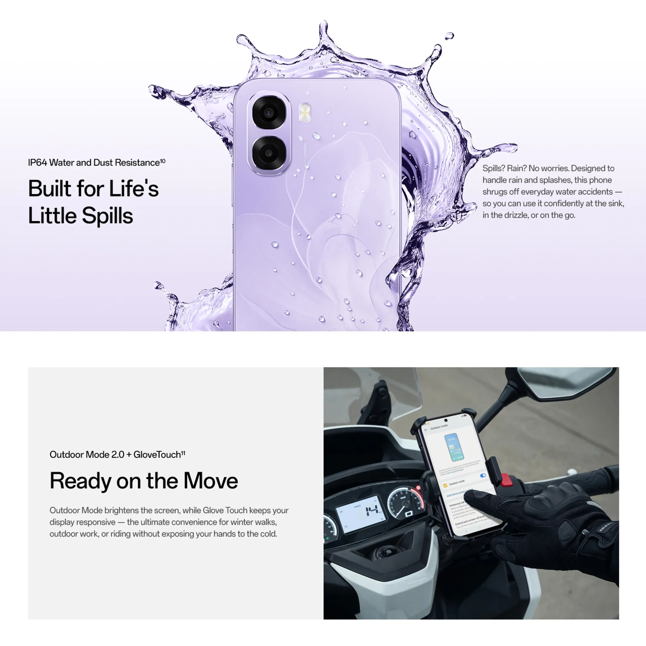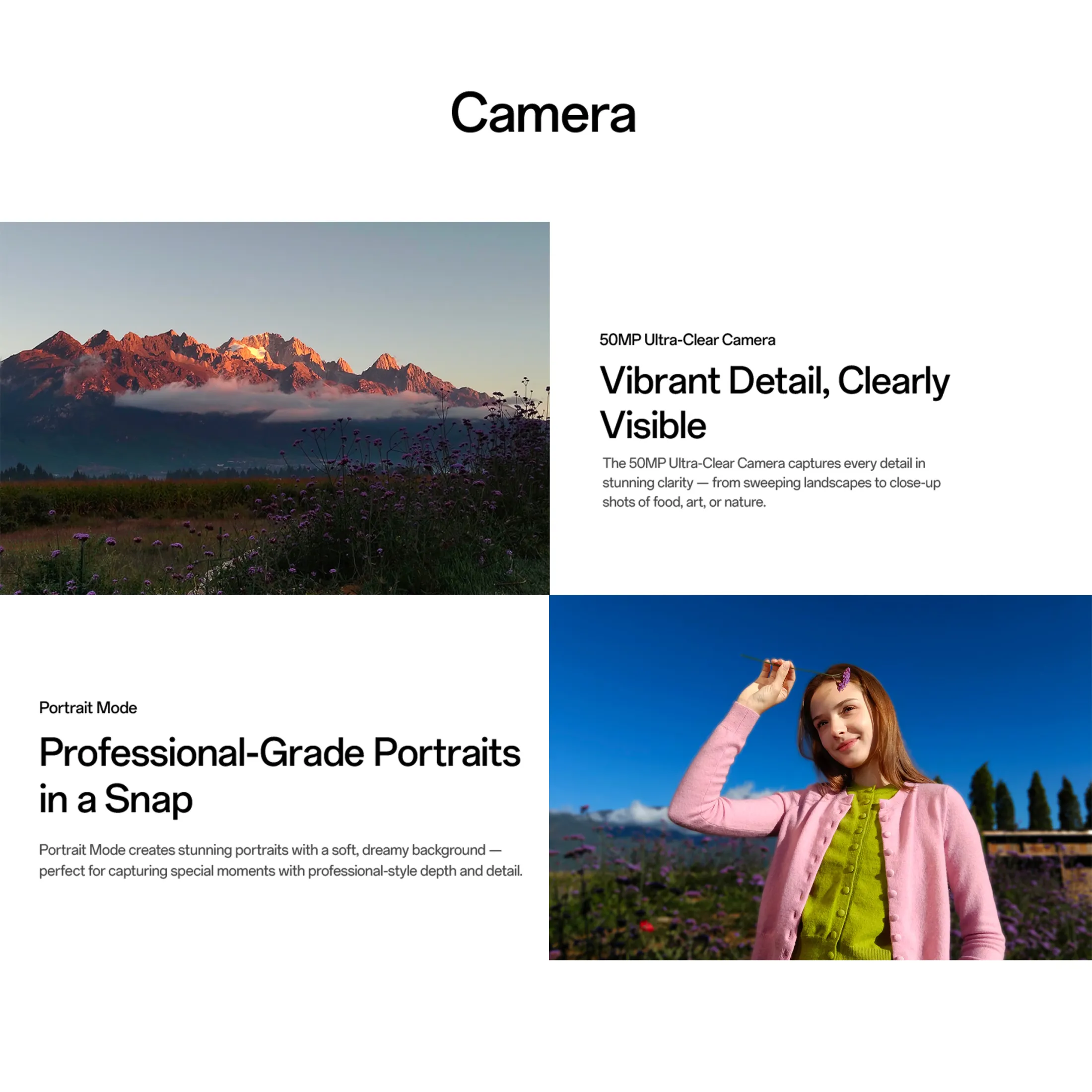 Camera Modes: Beyond its dual 50MP rear camera, the phone supports creative shooting modes – including dual-view video (simultaneous front + rear recording), slo-mo video, AI scene enhancements, and a Pro photo mode