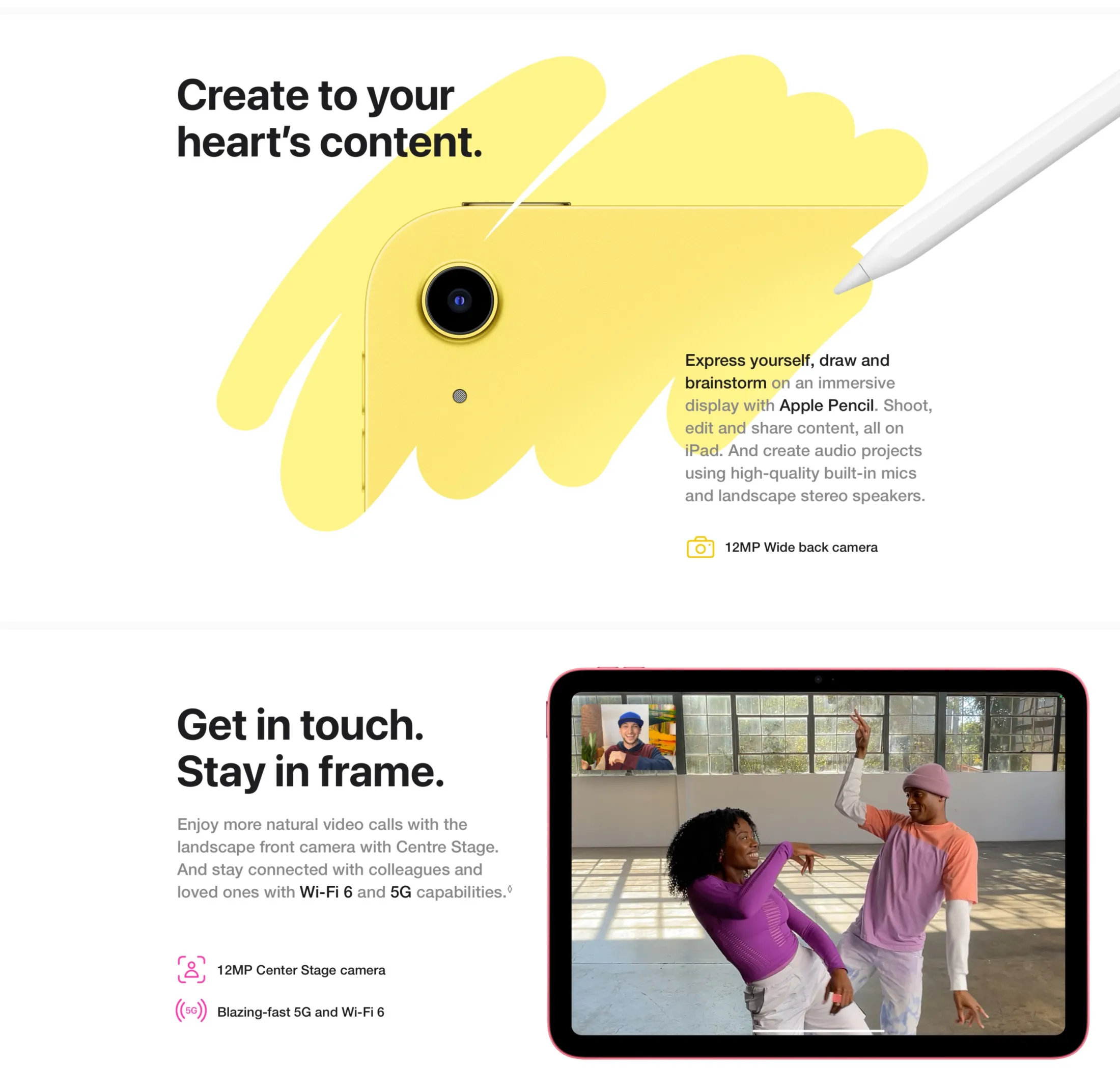 Front: 12MP ultra-wide with Center Stage for FaceTime & video calls