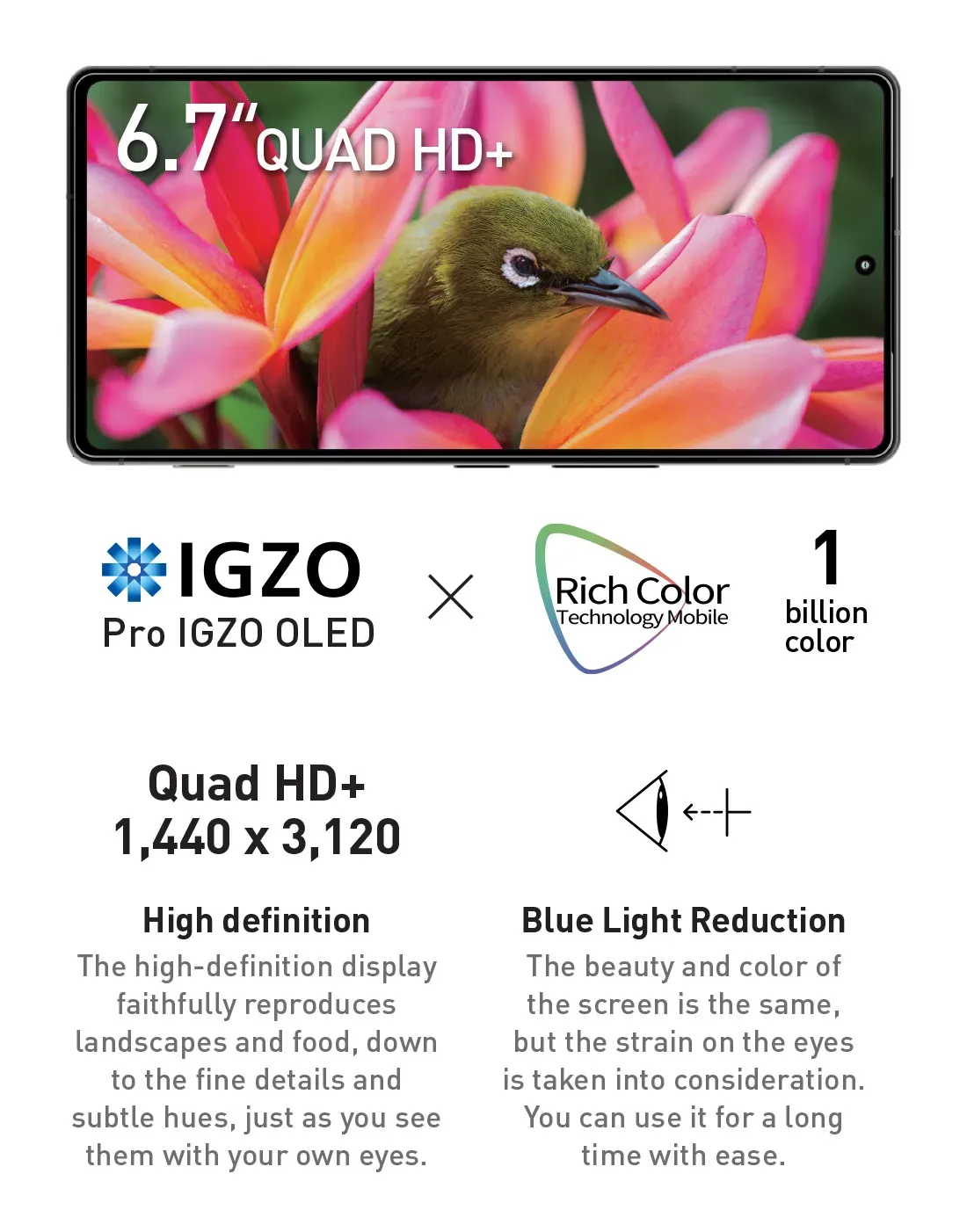 | Display | 6.71″ Pro IGZO OLED, 3120 × 1440 resolution, 240 Hz refresh rate |